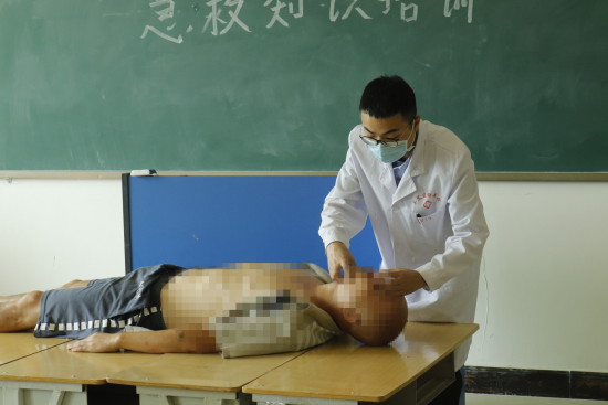 此次培训内容围绕心肺复苏急救方法,以一名罪犯模拟患者开展现场演示,从如何摆放患者急救体位、观察生命体征、胸外按压和人工呼吸等相关步骤作了详细地讲解,使罪犯通过直观的方式学习到如何在紧急情况下进行急救和简单处理,既能够安全应对又能够保护自己,为进一步的救治做好前期准备。