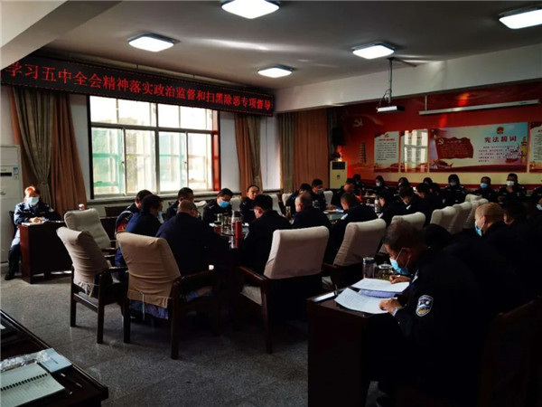 会议强调:从严从实全面学。各党支部、各部门要组织全体党员民警职工认真学习党的十九届五中全会公报和“十四五”规划建议,学习领会好、坚决贯彻落实好党的十九届五中全会精神,切实把思想和行动统一到全会精神上来,把力量凝聚到实现全会确定的各项任务上来,迅速掀起学习热潮。