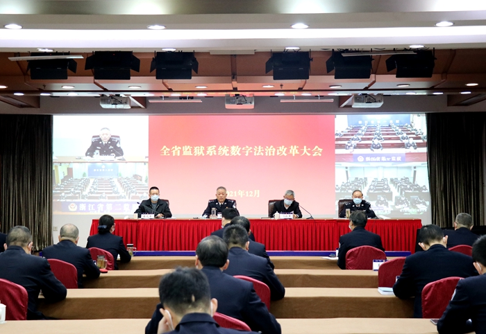 12月9日上午,浙江省监狱系统数字法治改革大会以视频会议形式召开。会议围绕“推进监狱数字法治改革 打造监狱综合执法办案体系”主题,总结推广我省监狱系统数字法治建设成果和综合执法办案体系建设试点工作经验,研究部署当前和今后一个时期全省监狱深化数字法治改革的具体任务。局党委书记、局长王争出席会议并讲话,局党委副书记、政委蔡俊豪主持会议。省高级人民法院审判委员会专职委员孙公幸、省人民检察院二级巡视员蒋元青应邀出席会议并讲话。省金华监狱、第二女子监狱介绍试点工作经验。