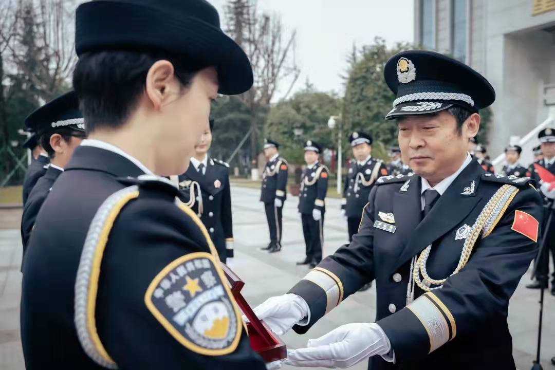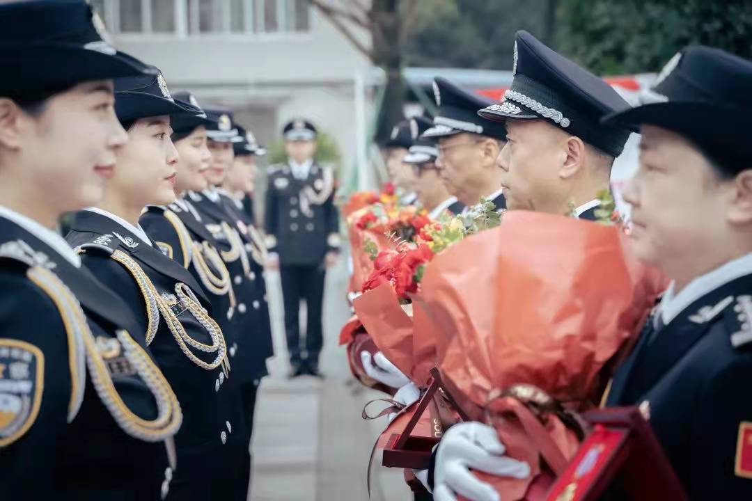 这是重庆市监狱管理局为庆祝第二个中国人民警察节而举办的升警旗暨从警三十年纪念仪式。