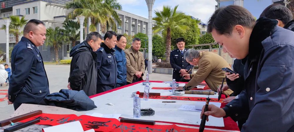 活动邀请梧州市龙圩区书法协会会长郑汉龙,以及监狱书法爱好者为大家书写春联。活动现场,郑会长以及各书法爱好者们泼墨挥毫,在精美且喜庆的对联纸上书写了一副副春联佳作,大家纷纷选取自己心仪的作品。前来参加活动的警察职工及家属们手里拿着满意的对联,喜悦之情溢于言表。