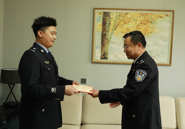 聂铭辰是一位入职刚满一年的新警,4月27日,他备勤、执勤50余天刚刚回到家中。监狱政委等人将荣誉证书送到家,并对其父母进行慰问,令他深受鼓舞。他说,我原本打算继续留在监区内执勤,可监区长“命令”我回家看望父母,我打算随时待命出征,与我的战友并肩战斗!