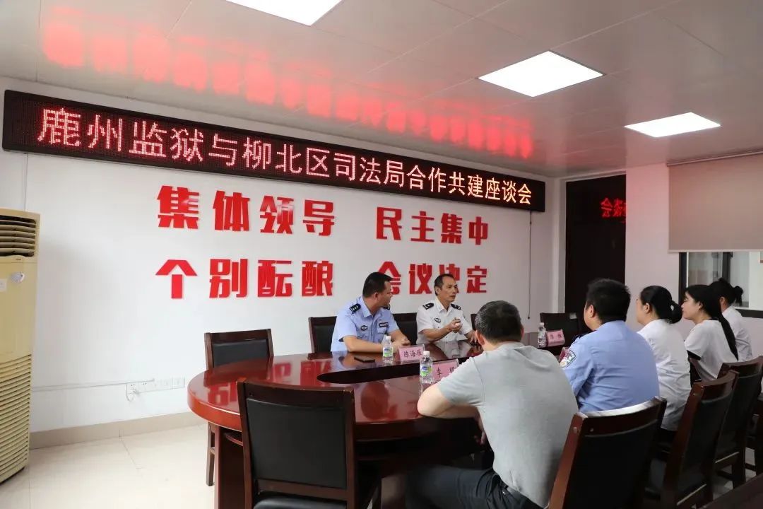 活动结束后,鹿州监狱与柳北区司法局开展合作共建座谈会,就履行社会责任,加强监地协作,助推柳北区社区矫正工作,共同维护社会安全稳定等方面开展交流。