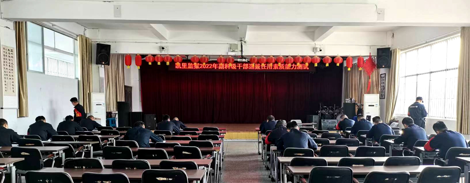 11月7日,贵州省凯里监狱组织报名参加2022年副科级领导干部、分监区长、政治指导员选拔的民警进行素质能力及警体技能测试,82名民警参加测试。