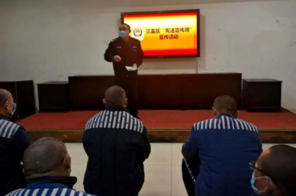开展“以宪法为镜”活动。在罪犯中选出领读人,带领大家朗读宪法条文,要求罪犯对照自身犯罪情节进行反思,充分认识违法的严重后果,并及时查找改造生活中思想和行为上的不良倾向,真正把宪法和法律知识运用到积极改造中去,争取早日回归社会。
