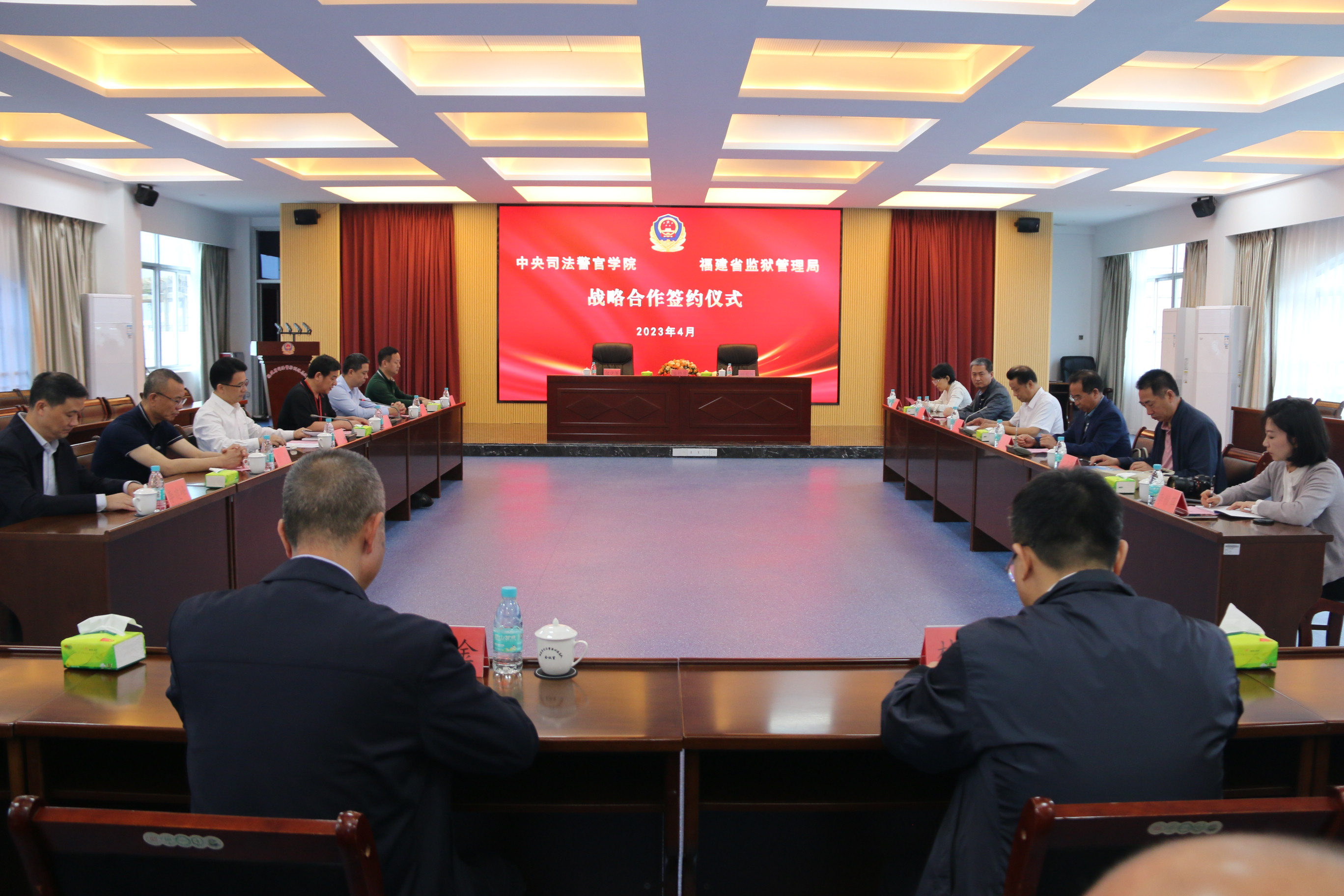 4月22日上午,福建省监狱管理局与中央司法警官学院战略合作协议签约仪式在福建省司法警察训练总队举行。福建省监狱管理局党委副书记、政治委员钟火阵和中央司法警官学院党委委员、副院长付少军出席签约仪式并签署战略合作协议。福建省监狱管理局党委委员、政治部主任、直属机关党委书记吴邦辉主持仪式。