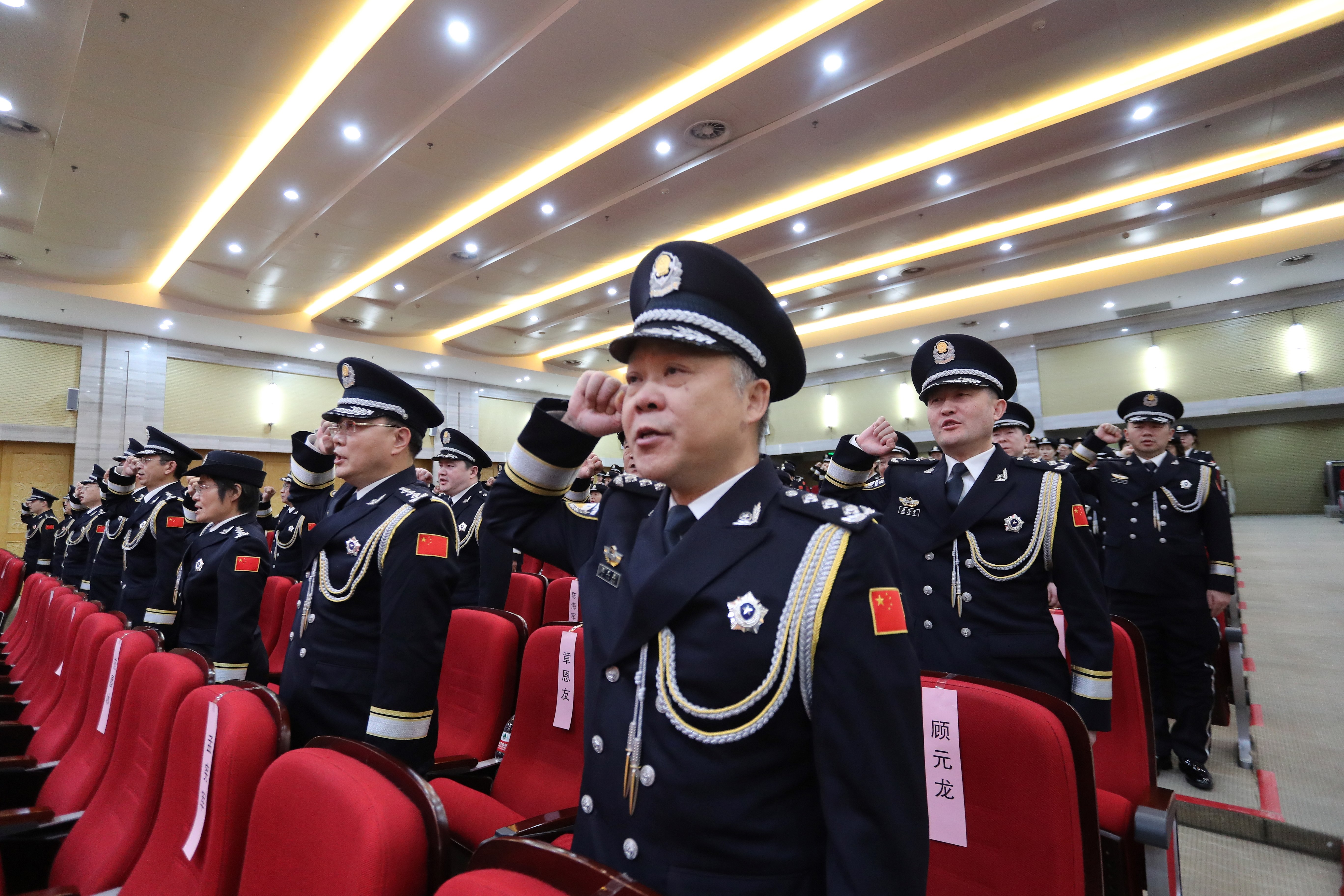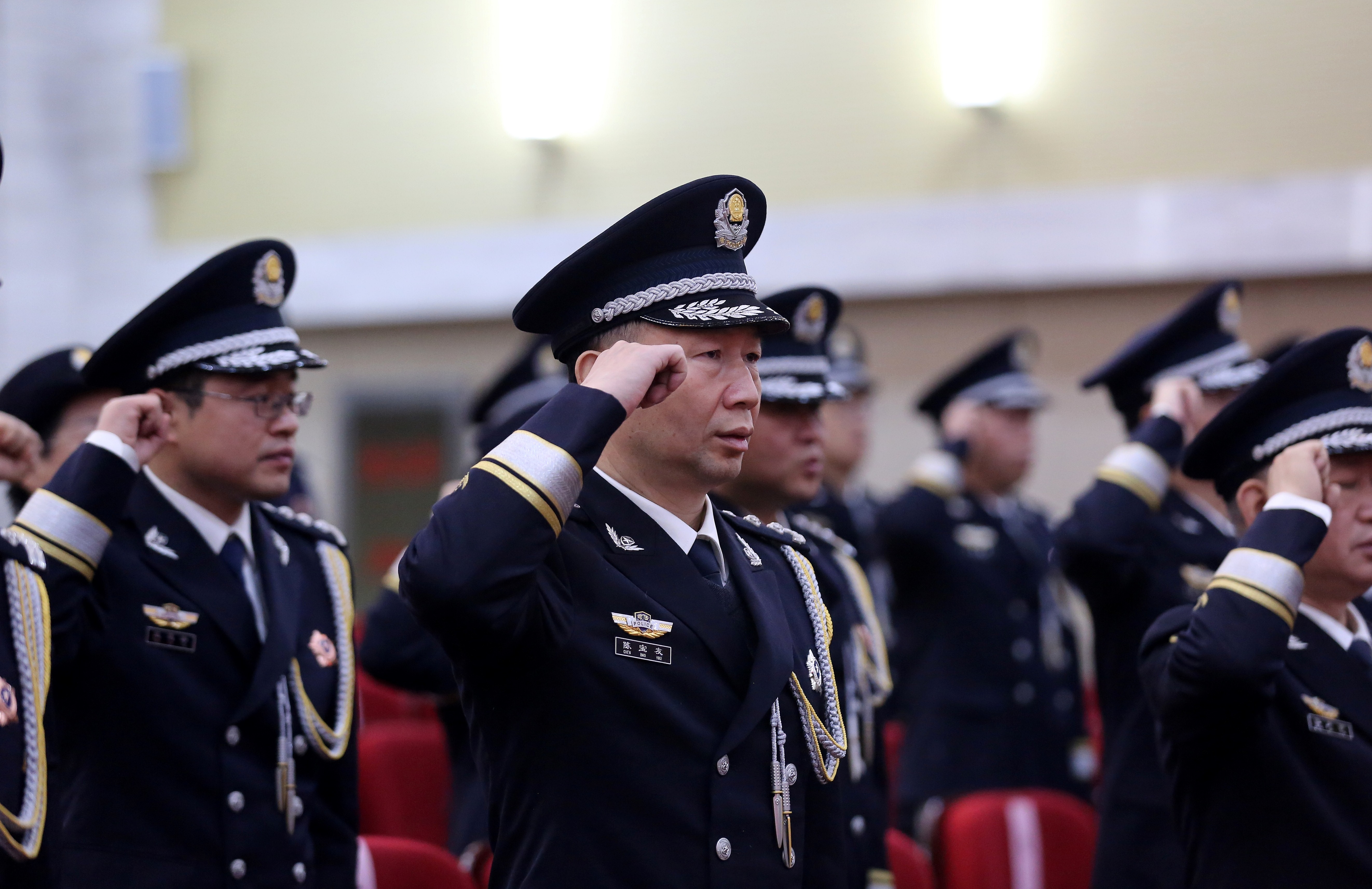 司法部机关全体人民警察和直属单位人民警察代表参加会议,集体重温习近平总书记重要训词,重温人民警察誓词,齐唱中国人民警察警歌。会议由政治部主任黄祎主持,副部长左力、赵昌华、王振江、胡卫列出席会议。